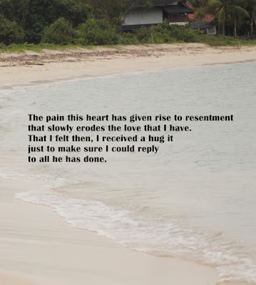 The pain this heart has given rise to resentment that slowly erodes the love that I have. That I felt then, I received a hug it just to make sure I could reply to all he has done.